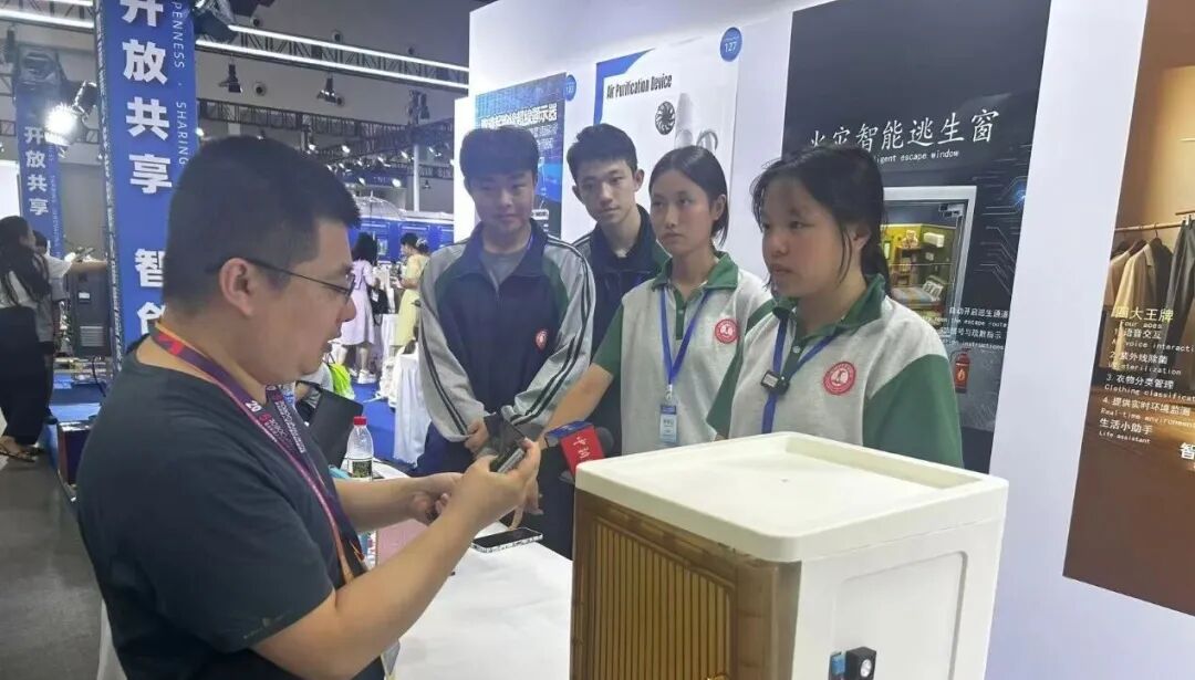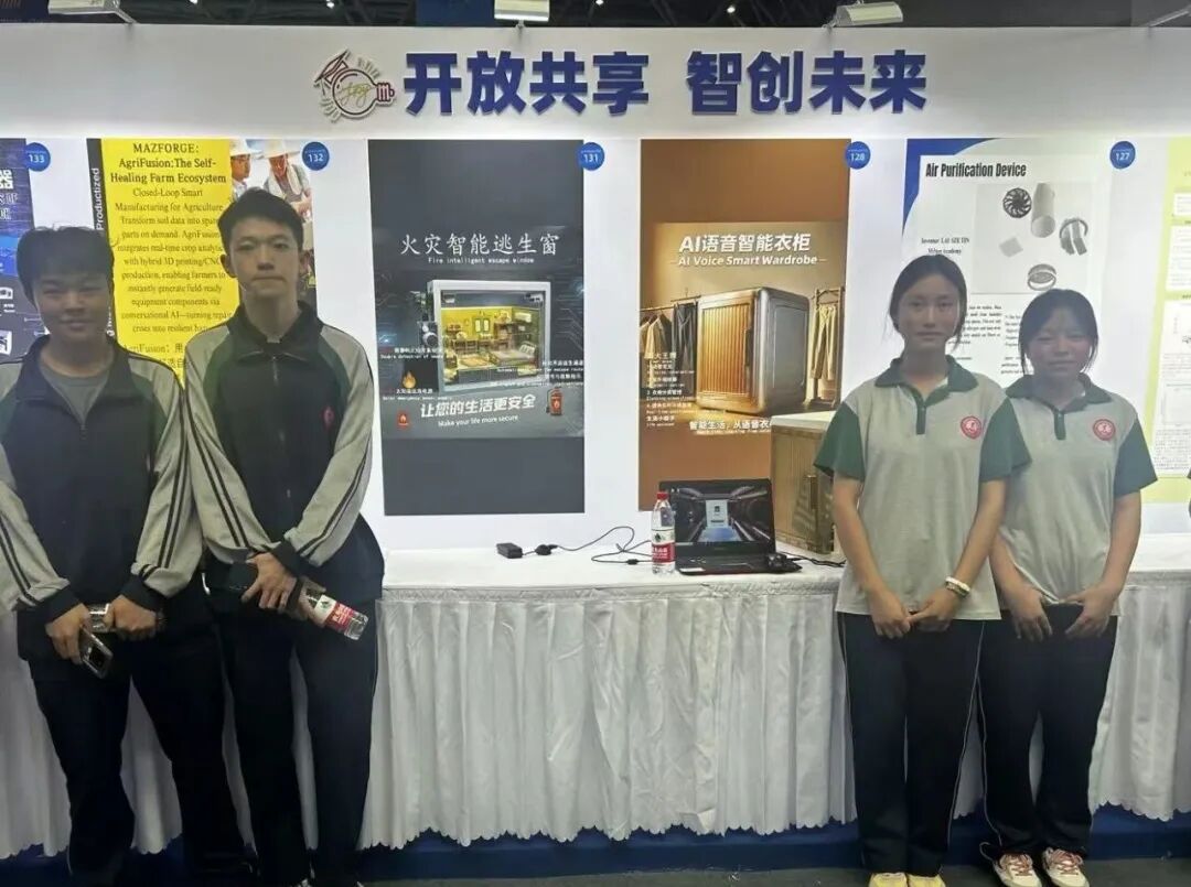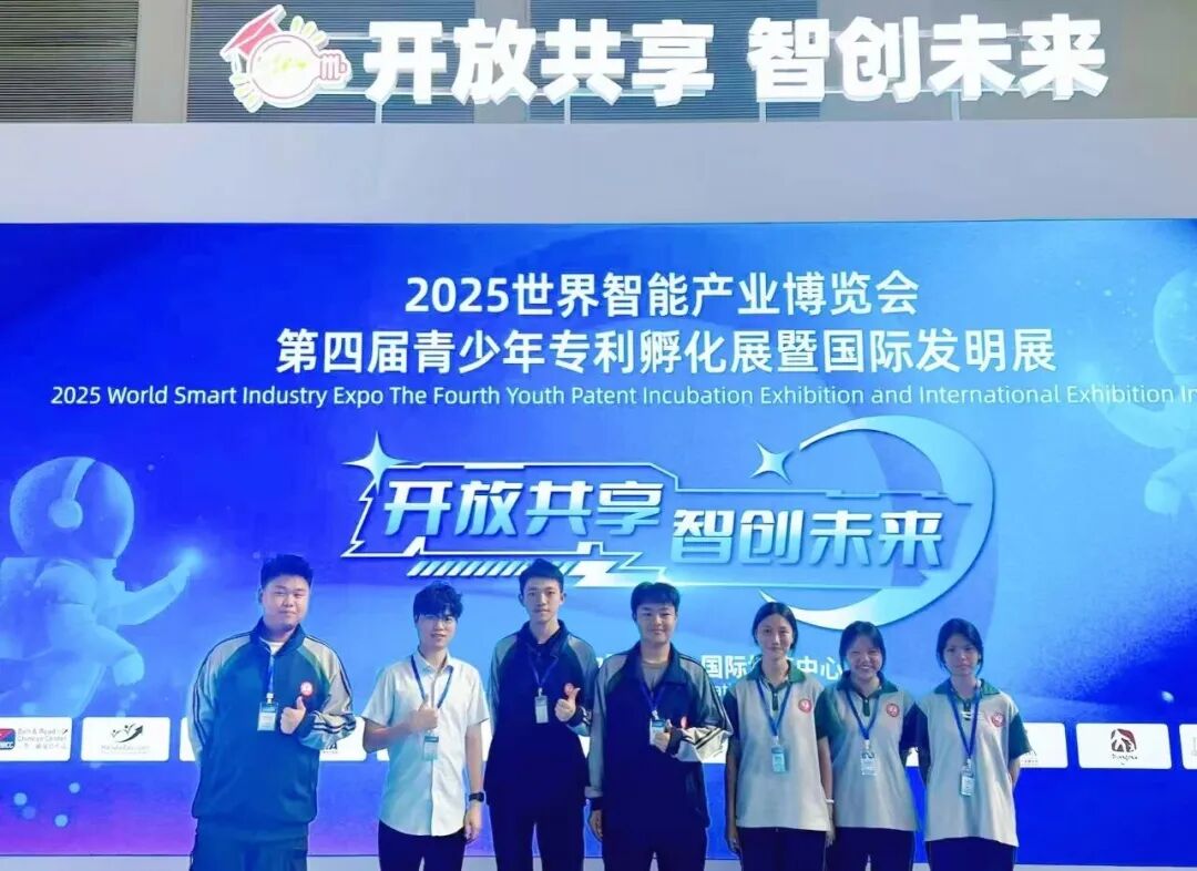 2025世界智能产业博览会由重庆市人民政府、天津市人民政府共同主办,第四届青少年专利孵化展暨国际发明展吸引了海峡两岸及12个共建“一带一路”国家和地区的234名青少年参与,现场展出80余个参展单位的126件青少年创新发明作品。学校参展作品融合人工智能等前沿科技,体现了同学们立足现实需求、锐意创新的科学素养。获奖项目包括:银奖作品《AI语音智能衣柜》、铜奖作品《火灾智能逃生窗》、铜奖作品《深地智能探测机器人》。